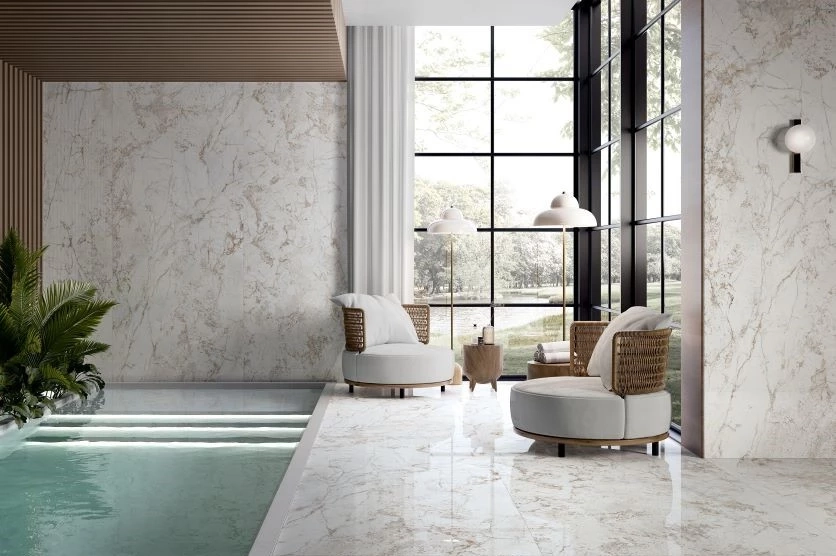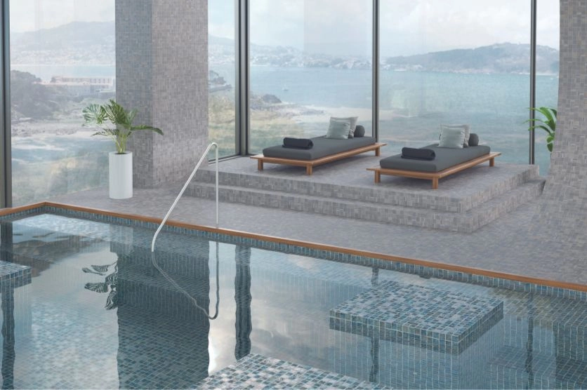 Une piscine intérieure, ce n'est pas seulement un luxe. C'est aussi un véritable espace bien-être, un havre de paix et de détente. Pour une touche de sophistication, un petit « plus » design, choisissez comme revêtement pour votre piscine un carrelage adapté ou une mosaïque et tout autour un carrelage grand format, afin de créer une ambiance élégante, harmonieuse, en parfaite adéquation avec l’univers carrelé de la maison. Un carrelage antidérapant qui plus est pratique, et facile à entretenir avec un minimum d'effort.