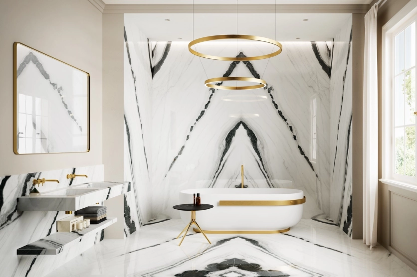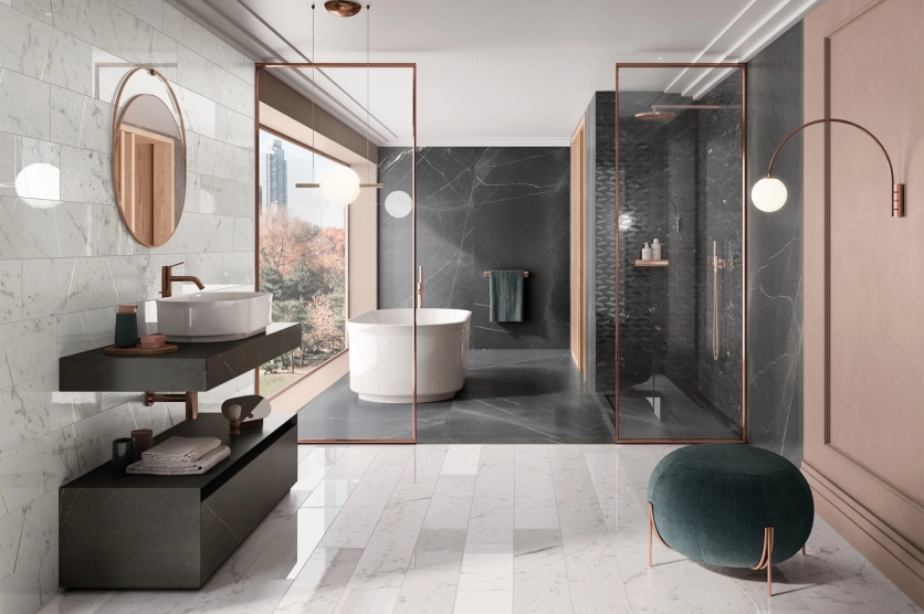 Le carrelage SMOOTH rend hommage à sept somptueuses essences de marbre. La pureté naturelle des dalles « effet marbre » crée un alphabet de matières et compose un intérieur au design unique.