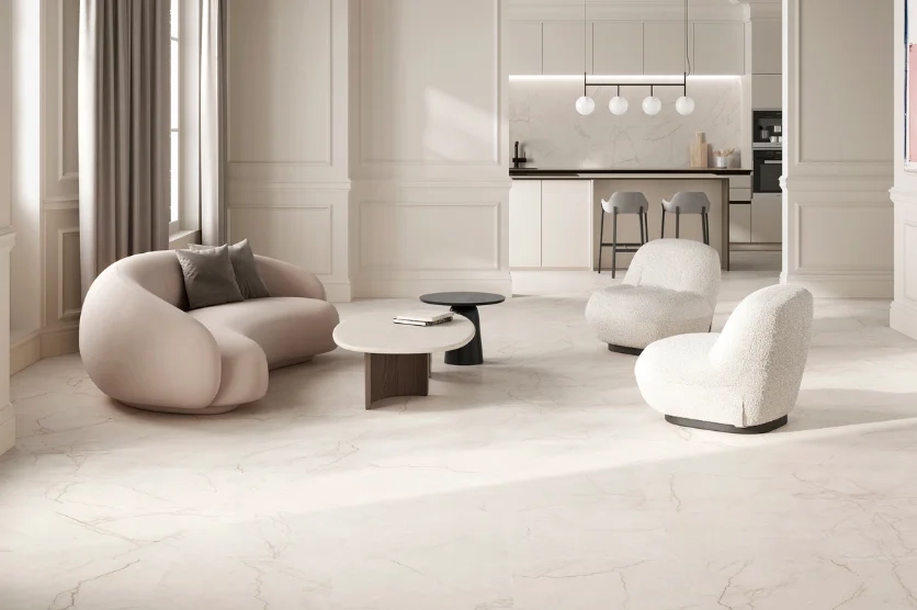 Parfait pour les sols et murs. Résistant et facile d’entretien, conçu pour les espaces de vie. Bon Plan du 01/09/2025 au 31/12/2025, carrelage grand format 90x90 cm à 38,50€ TTC le m2. Dans la limite des stocks disponible en usine. (Prix hors promotion 49,50€ TTC le m2).