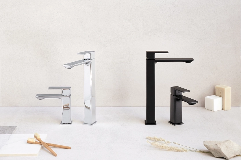Cubo, est un mitigeur carré fonctionnel. Une robinetterie chromée pour les amateurs d’une esthétique intemporelle ou Noir mat dans sa version industrielle.